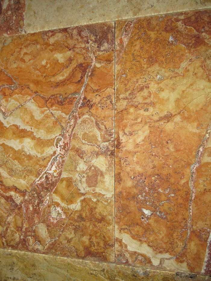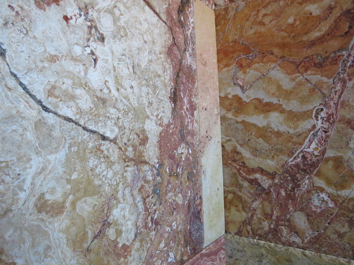 Камень имеет очень разносторонние варианты цвета - от ярко-красного до бежевого и коричневого. В миксованном виде, в не самом большом помещении.. На вкус и цвет. И хотя я не любитель ярких оттенков, не скажу, что мне не нравится этот санузел. В нем определенно есть некий шарм.