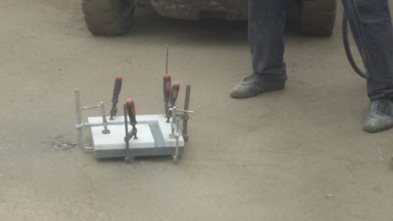 Антискользящие полосы сделаны методом пескоструя. Кстати, а вот и процесс выполнения образца для этого объекта: