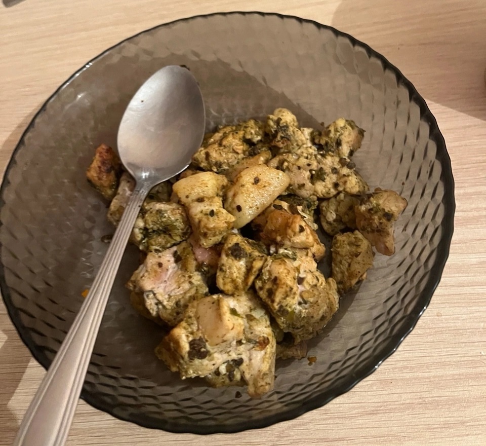 Давайте знакомиться! Я незрячий юрист, путешественник и общественный деятель, пишу в интернете с помощью специальных программ невизуального доступа на компьютере и функции «специальные возможности» на смартфоне, но сегодня хочу рассказать о том, как можно готовить вкусно без помощи зрения. Этот вечер я решил провести в мясном стиле и не стал запорачиваться по поводу овощей или любого другого гарнира. Захотелось мне мяса, и все тут. Итак, готовим свинину с ореховой аджикой и сливками. Нарезаем 200 гр. Охлажденной корейки, добавляем две столовых ложки ореховой аджики и 100 мл. Десятипроцентных сливок, смешиваем.