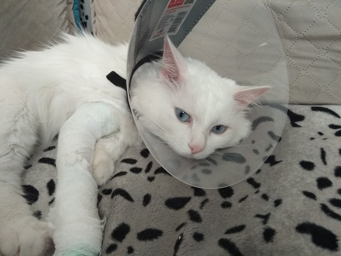 С гипсом ходит до сих пор, планируем так же пристраивать после его выздоровления.