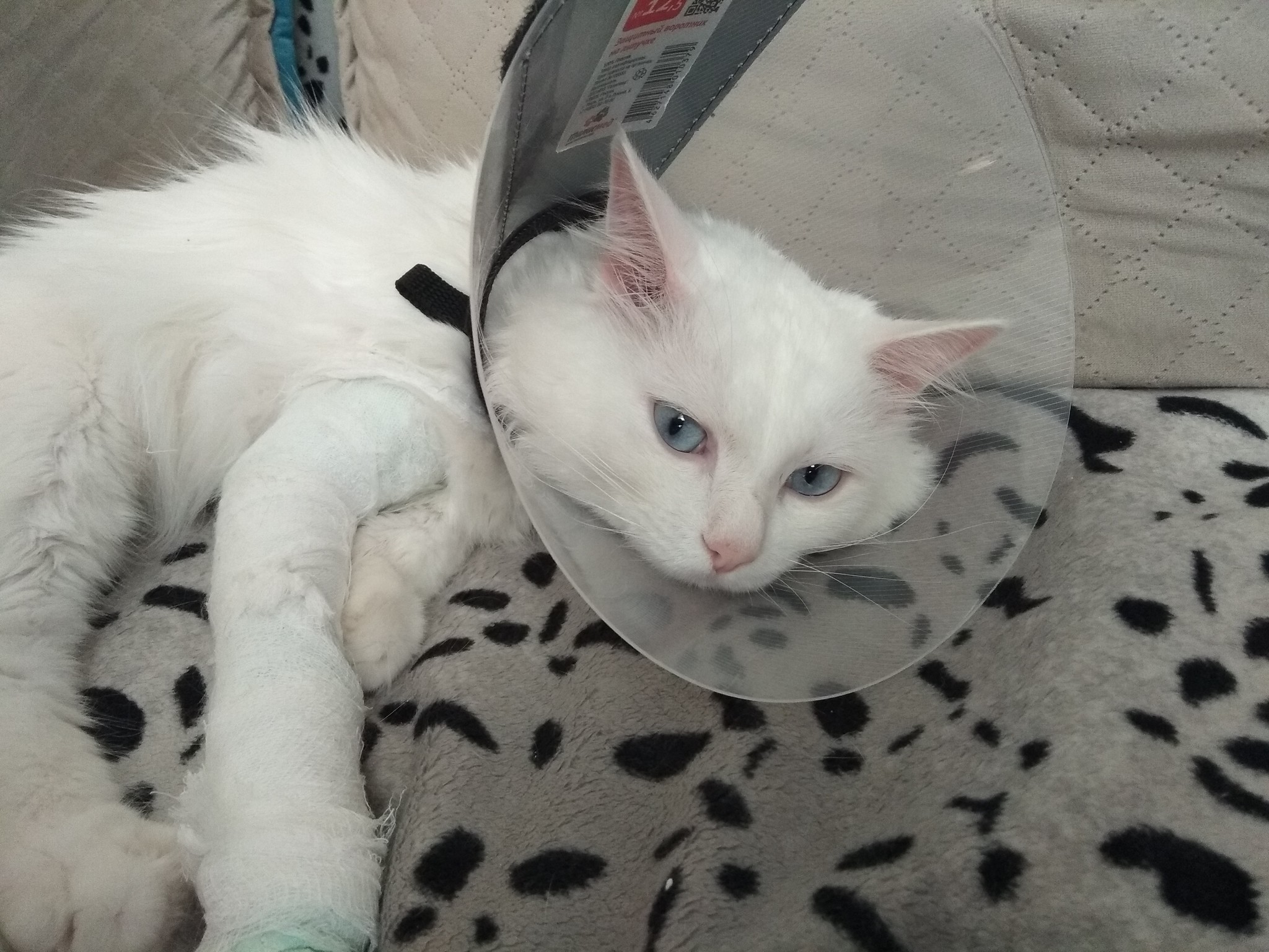 Лапа мне его не нравилась и через день мы рванули в ветеринарку. В клинике ему сделали рентген, оказалось что вывих, наложили гипс и прописали лечение. И так понеслись будни по выхаживаю) Бен стойко, а иногда не очень, выдерживал уколы, ему очень не нравится защитный воротник, но выбора у него нет)