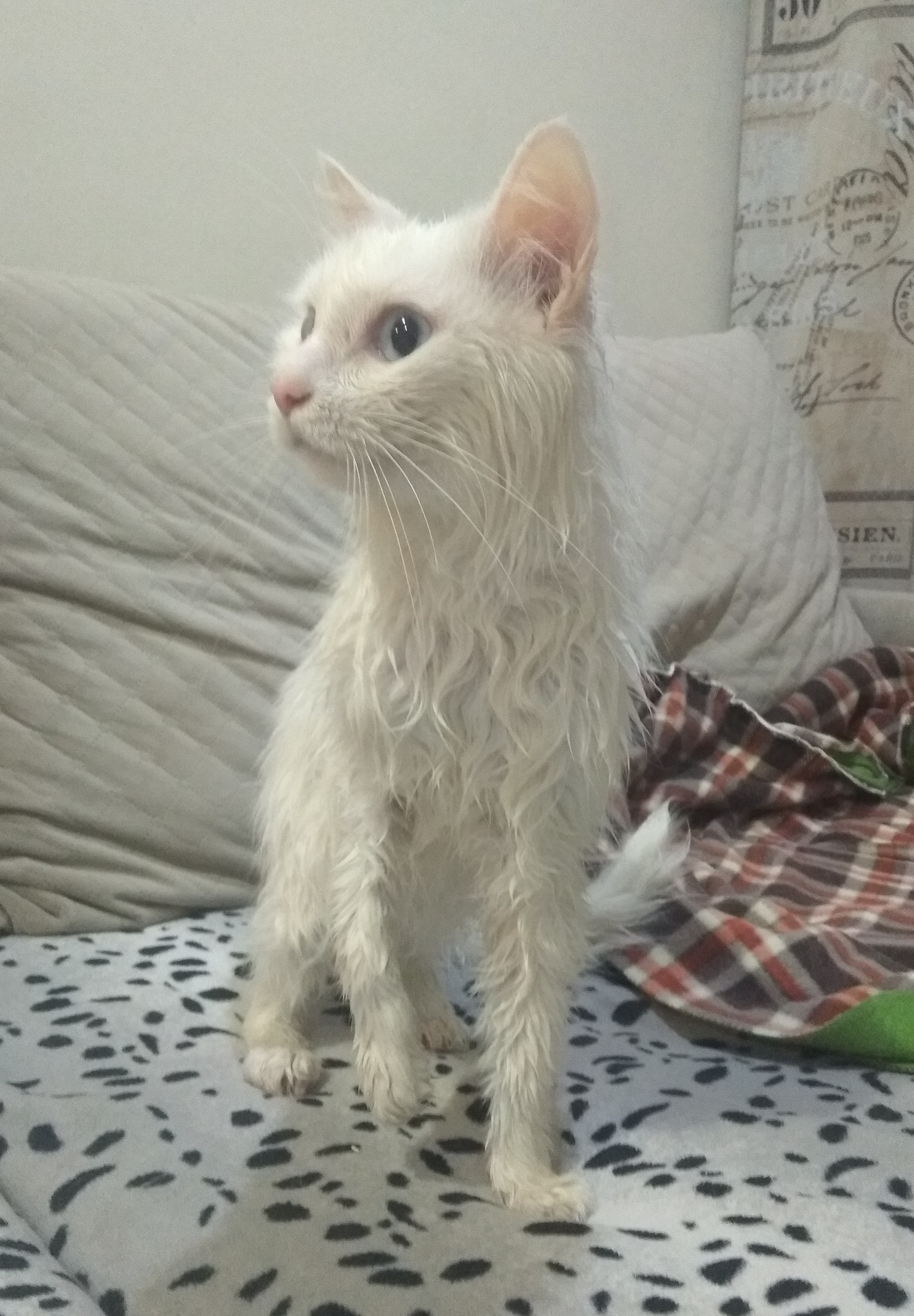Но в один вечер звонит мне муж, нашел котика под кустами, видно домашний, красивый и очень тощий. Я по пути завезла Мариюшку на старое место жительства (т.к. она не привитая, ей с уличными нельзя, да и 3 кота уже перебор) и понеслась за мяукоющей находкой.
