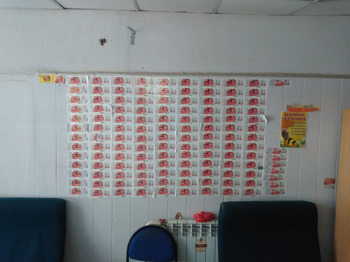 Это мы совершенно не в шутку называем «стеной плача». Самая дешёвая колбаса из «Хуёрочки». 34 рубля за штуку. Уж не знаю, есть ли там хоть какая-нибудь органика? Но позволяет не умереть с голоду и почувствовать себя героем бессмертного произведения «Билл, герой галактики».