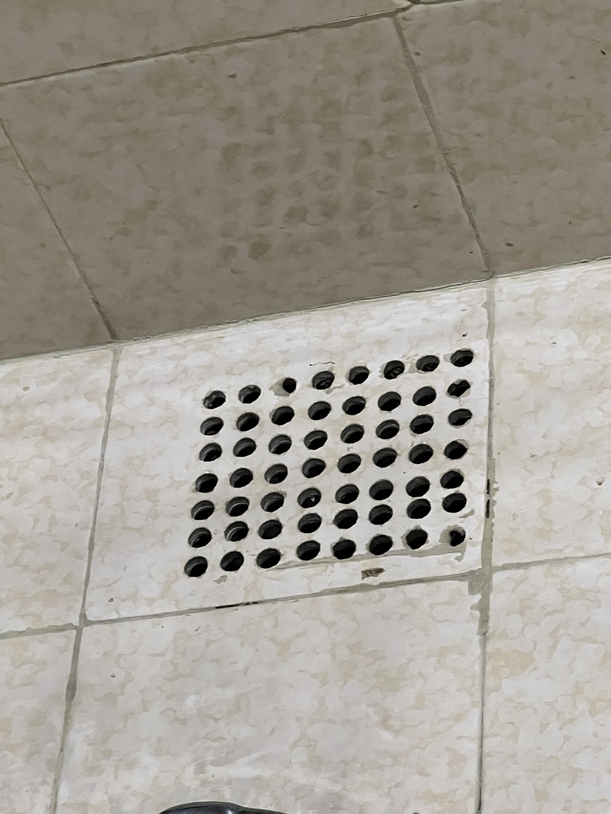 Особый нюанс - далекий советский плиточник, не имея современного инструмента, умудрился задизайнить выход в вентиляционную трубу от-таким способом.