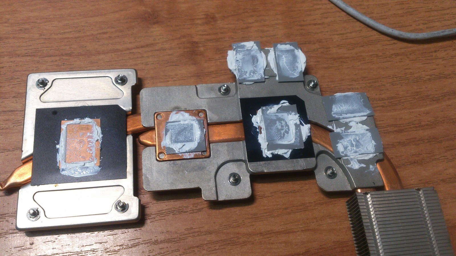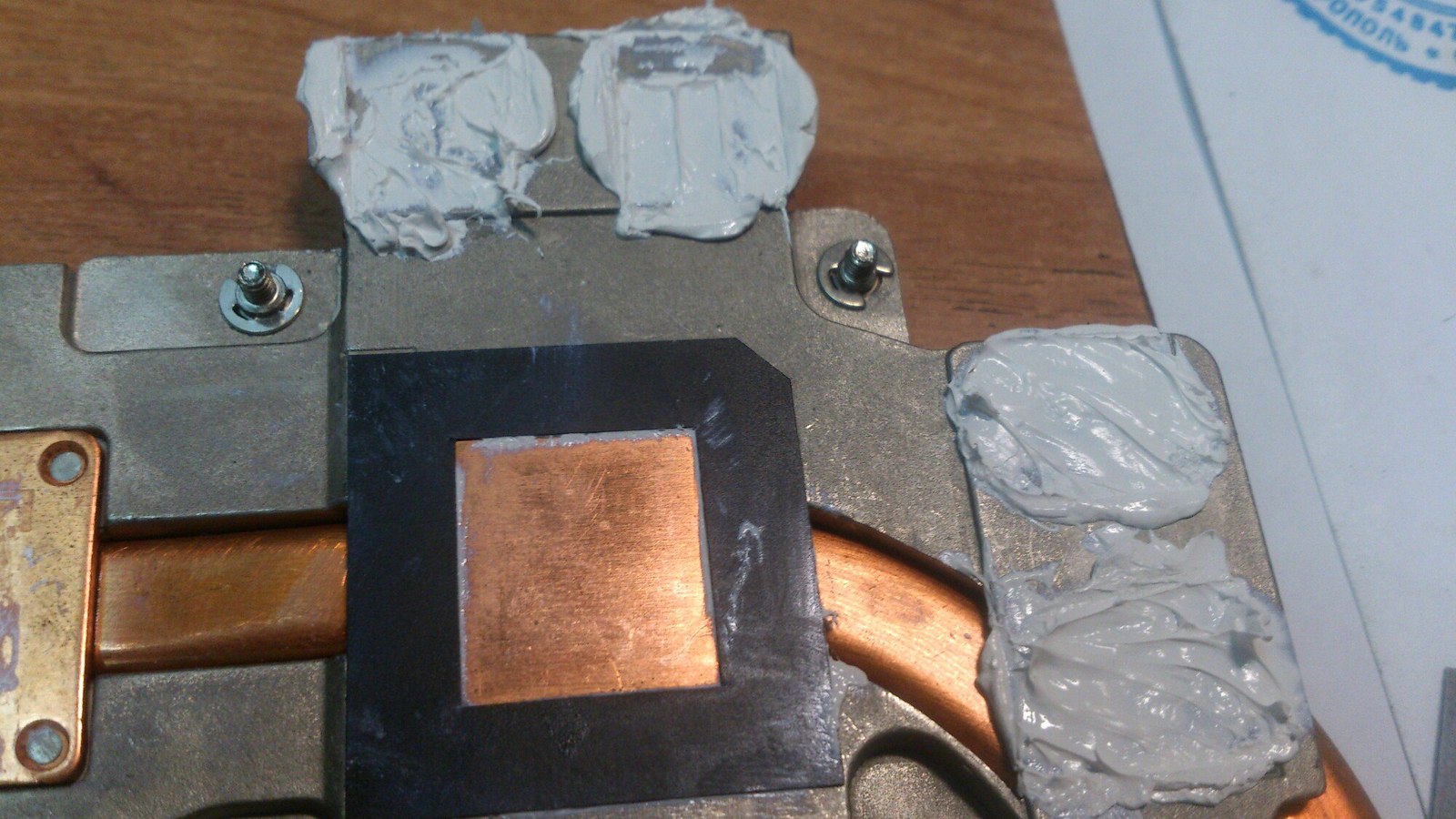 Приносит сегодня знакомый свой ноут с жалобой на то, что тот самопроизвольно выключается. Ну ок, разбираю, снимаю систему охлаждения, а там... все жЫрно, промазано термопастой, где надо и где не надо. Термопрокладки как в сэндвиче, с двух сторон смачно промазаны пастой... ну шоб наверняка.