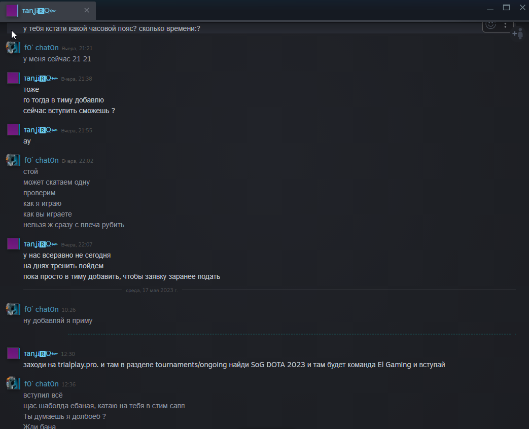 Пару месяцев назад, добавилась в друзья в стиме тянка и через какое-то время стала зазывать на турик. Мол "А ты норм играешь ?" "Сможешь помочь на турнире, нам не хватает одного", затем закидывает тебе наживку и просит зарегаться на сайте по турнирам: "Вот сайт зарегайся на турик"