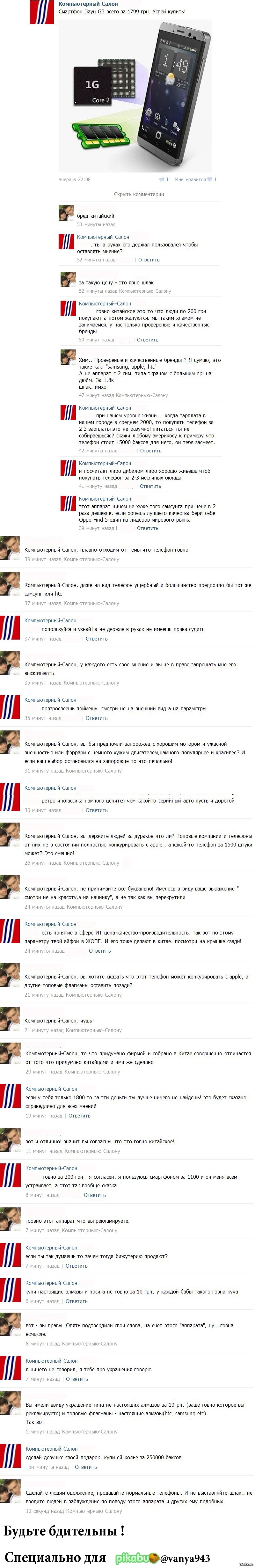 vanya943 Будьте осторожны ! 12 лет назад Длиннопост (был вчера "затрален" другом "находчивый" продавец в вк ) [моё] Продавец Телефон Китай Made in China