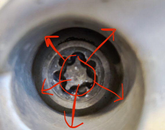 Работник мне понравился. Общительный, с виду всё делал хорошо, быстро и аккуратно. Собрал колеса, отбалансировал. При мне он наживил болты рукой, пристрелил гайковёртом, "прощёлкал" каждый болт динамометрическим ключом. На вид грамотно и хорошо. В общем, всё было здорово до того момента, как мне понадобилось снять колёса. Один из болтов на каждом - секретка, ВАГовская, оригинальная.