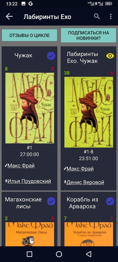 В основном давно сижу на фантастике и фэнтези, но уже сутки не могу найти ничего такого, чтобы понравилось. То озвучка подкачала, то слишком поверхностно, то само произведение... Как же в последнее время меня раздражает выражение "Я созерцал..." Ух! Везде напихано.