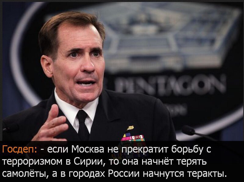 "Последствия будут такими, что гражданская война в Сирии продолжится, экстремисты, экстремистские группы продолжат пользоваться вакуумом (власти), существующим в Сирии, для расширения своих операций, которые будут включать в себя - несомненно - удары по российским интересам, возможно, даже по российским городам. И Россия продолжит отправлять домой военных в мешках для тел, и они (россияне) продолжат терять ресурсы, возможно, даже снова самолеты", - сказал Кирби.