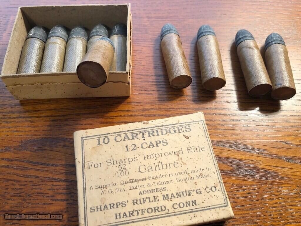 В противоположность обычным патронам такого рода этот вид, называемый Sharps Paper, не был оснащён отверстием в дне для воспламенения порохового заряда. Более того, патрон имел такую длину, что его задний конец с закрытым дном после заряжания на несколько миллиметров выступал из патронника. При повороте спусковой скобы вверх поднимался и клиновой затвор, острая передняя грань которого срезала дно гильзы и струя пламени при воспламенении капсюля могла сразу поджечь сравнительно большую часть порохового заряда. К тому же закрытое дно предотвращало высыпание пороха наружу при транспортировке. В общем и целом, всё хорошо.