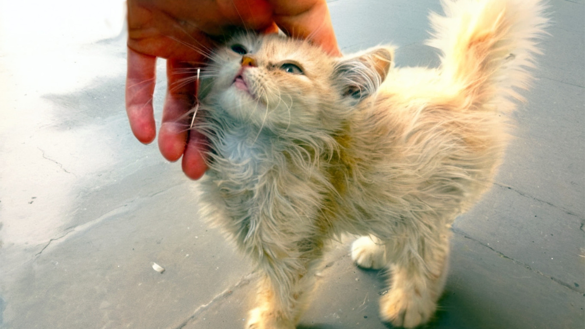 У котёнка сегодня тоже был не совсем удачный день. Огромный кот напал на него и больно укусил за лапу. Потом с ним долго играли дети.