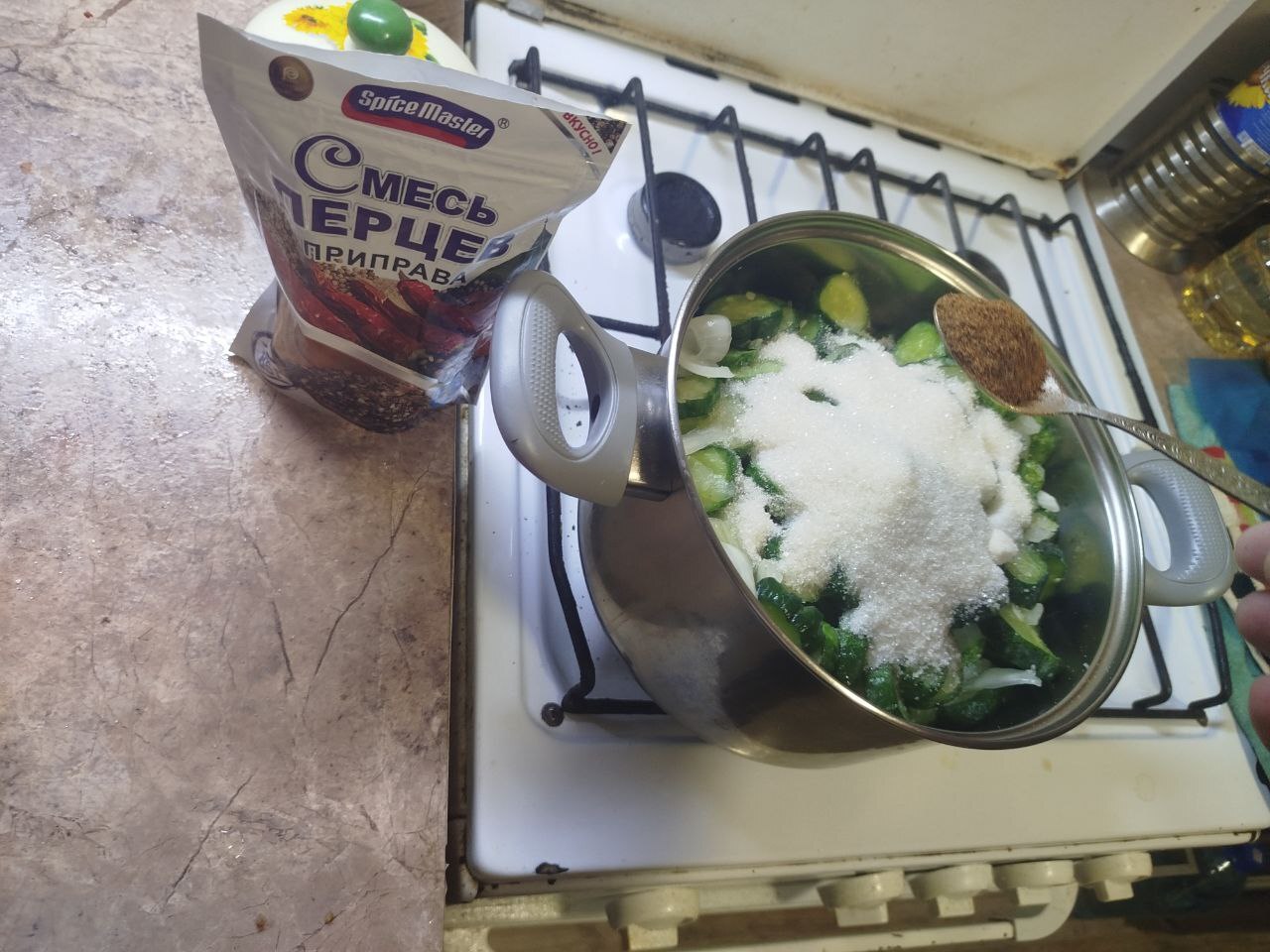 Следом стакан сахара, и паприки и перца