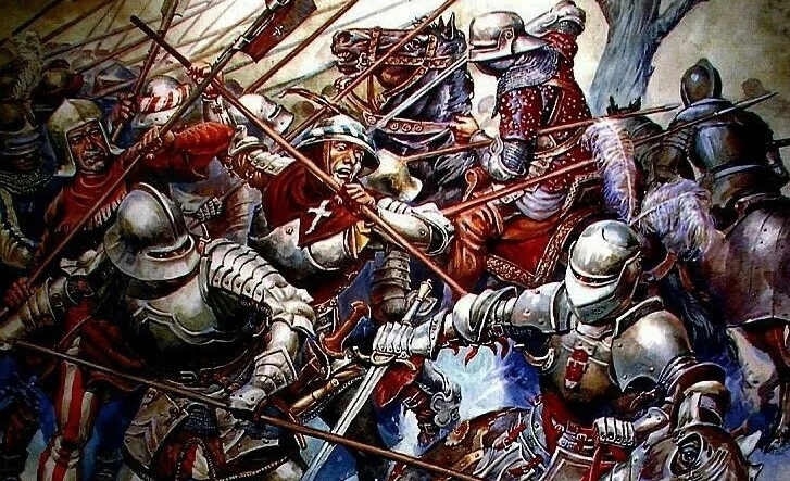 А эффективность наемных банд вообще и тяжёлой конницы особенно к 15-му веку стала очевидно выше феодального ополчения. Просто на голову. В перерывах между войнами банды делили Францию на куски, и грабили каждый свой, нередко давая бой и разбивая местных феодалов даже в крупных сражениях.