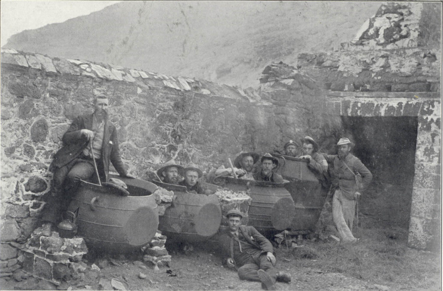 Пленные буры в лагере Дедвуд, о.Св.Елены. Огромные чаны, в которые они забрались прикола ради, явно использовались на каком-то лагерном производстве, но на каком точно - сказать не могу.