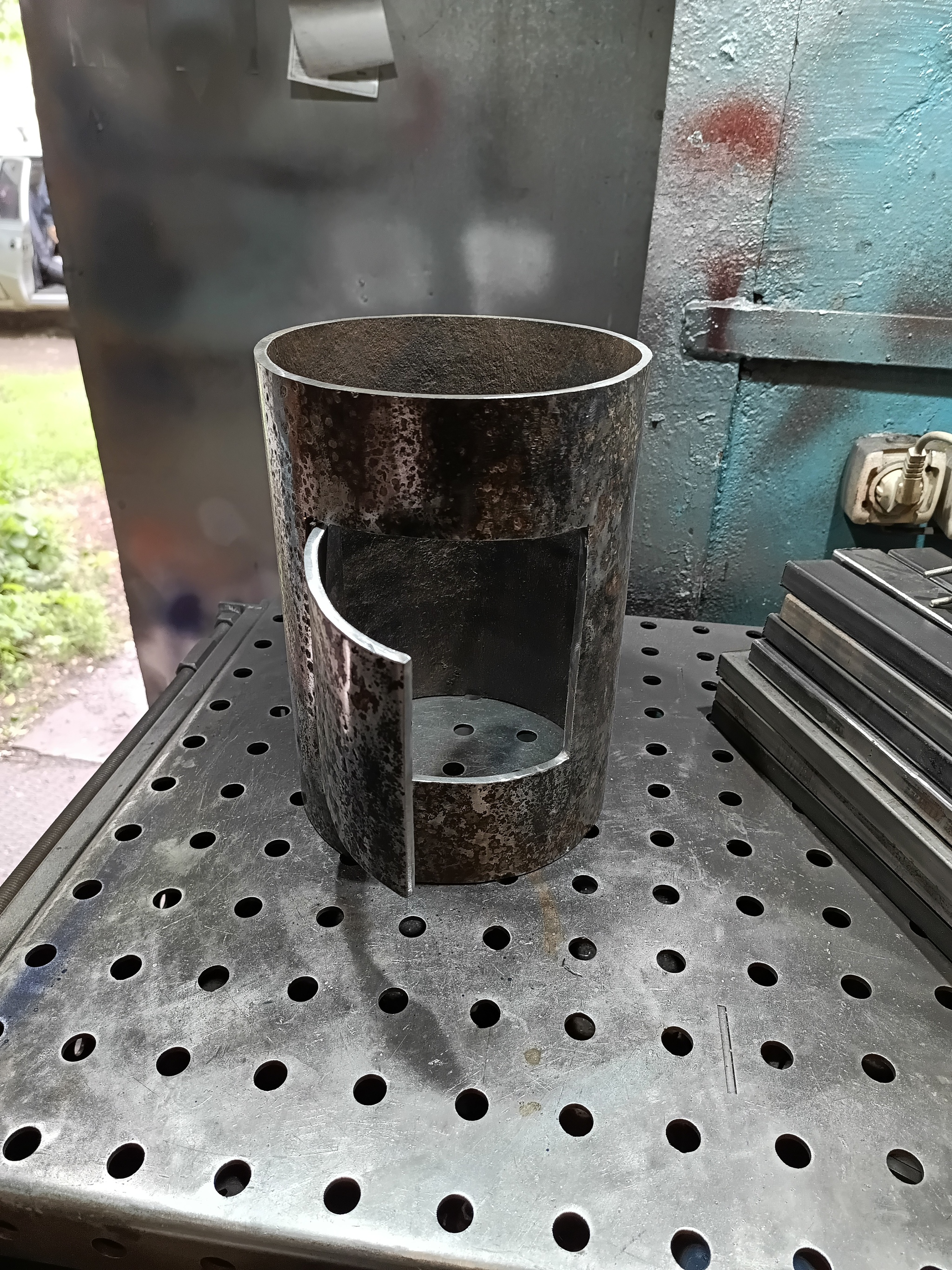 Из куска листового металла вырезал верхнюю круглую крышку буржуйки, начал прикидывать варианты дымохода.
