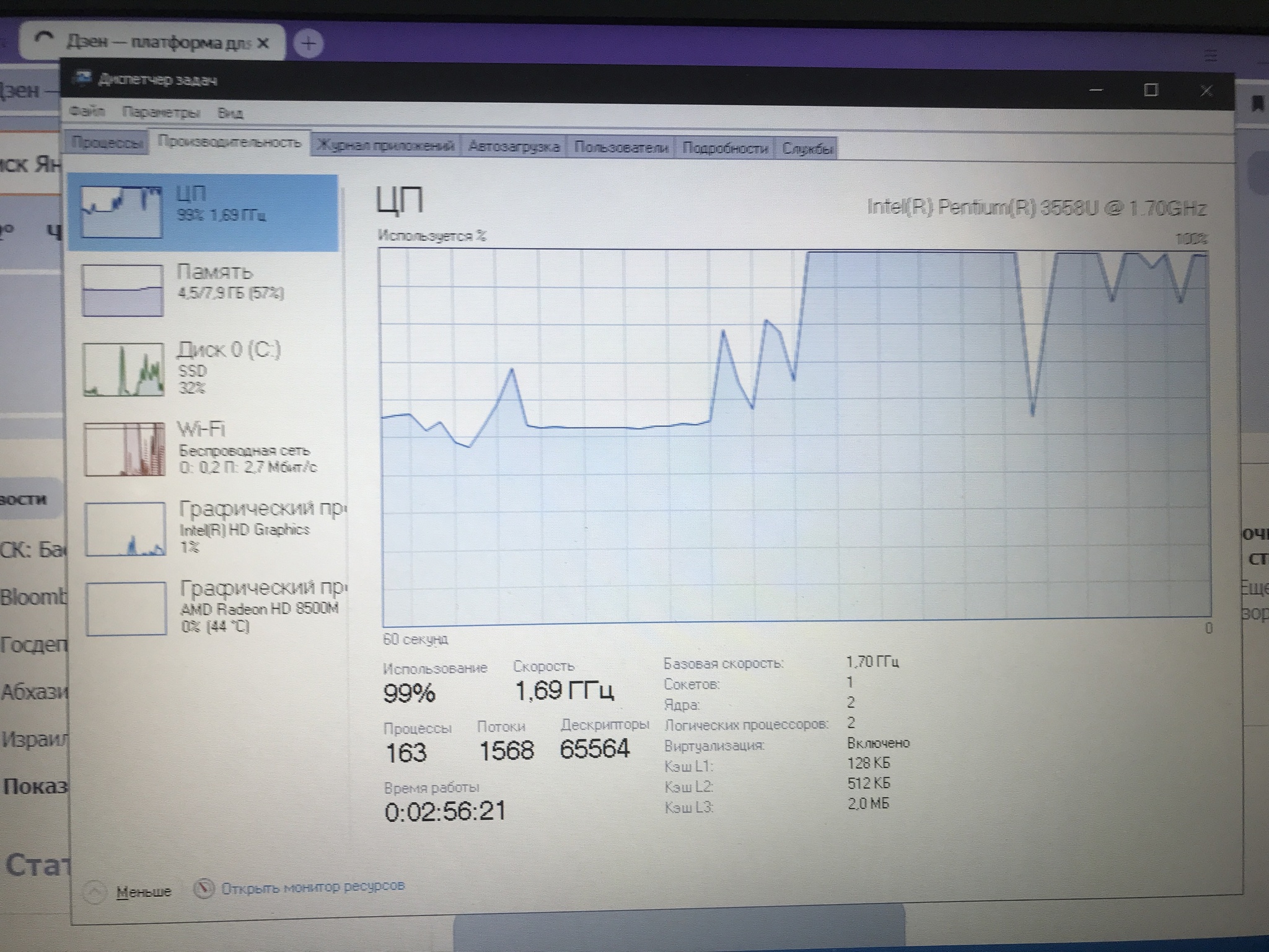 Принесли ноутбук Lenovo B50-70 - тупит. Дабы долго не рыться в поисках причин предложил переустановить Винду, тем более, что устанавливалась оная очень давно и ценного на нем по сути ничего нет. Стояла 10ка 64бит. Ее же и решил поставить заново. Но еще на стадии предварительной оценки обратил внимание на частоту работы проца и нагрузку - выше 0,8 ГГц и 47% не видел. Причем при 47% ноут начинал жутко тормозить.