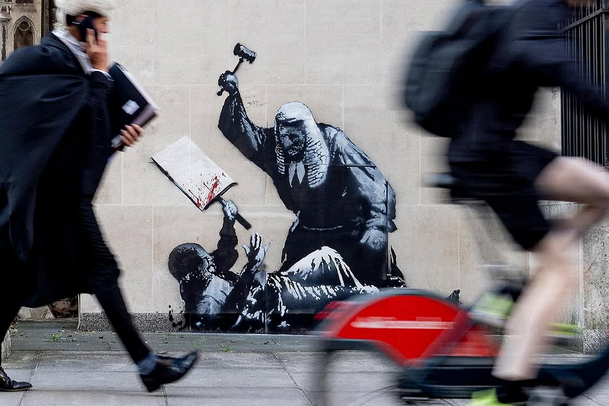 Последняя работа Бэнкси в Лондоне на стене Королевского суда, которую закрасили: