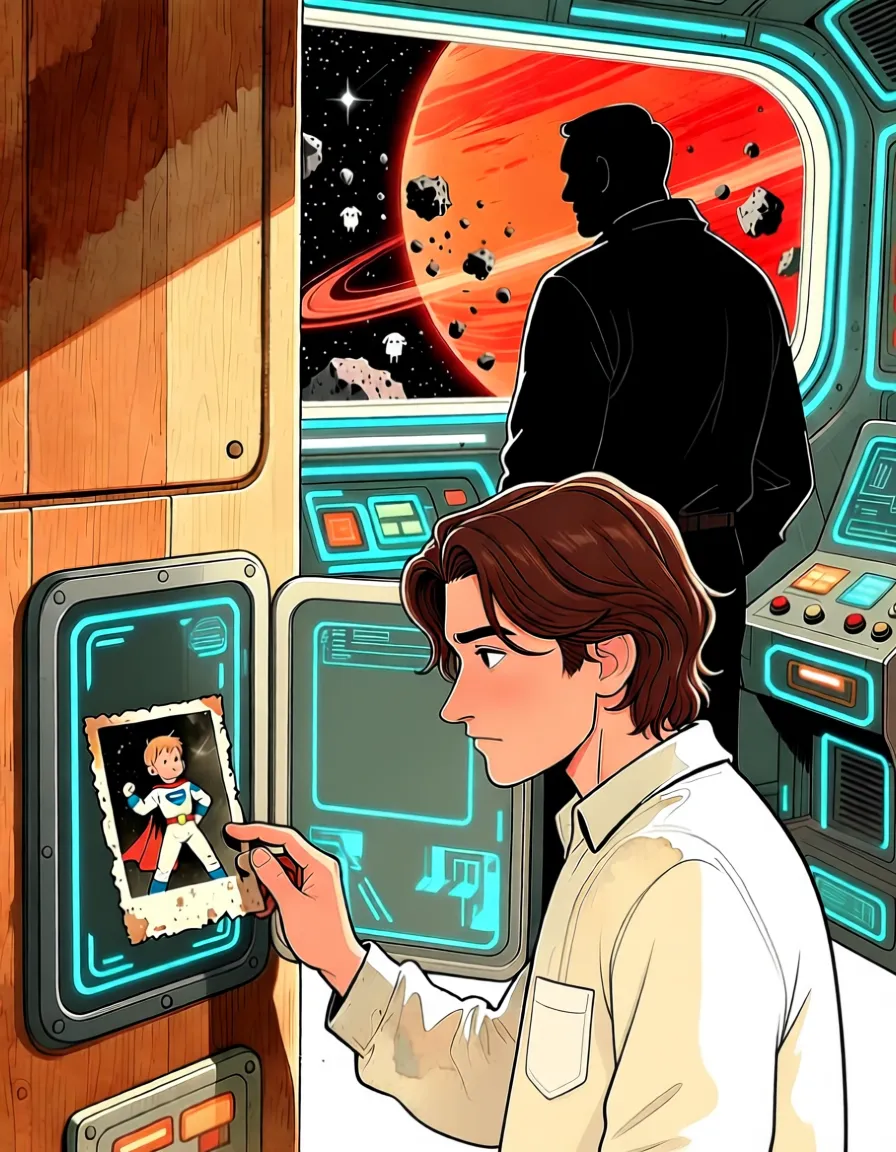 Мой взгляд упал в кучку хлама в гравитационном "бардачке". Плоская картинка с маленьким мной выглядывала из-под термокружки. О боги! Я на ней стоял в той самой позе героического Джима. Технология двадцать первого, нет, двадцатого века, если мне не изменяет память. Как оно вообще сохранилось за эти годы.