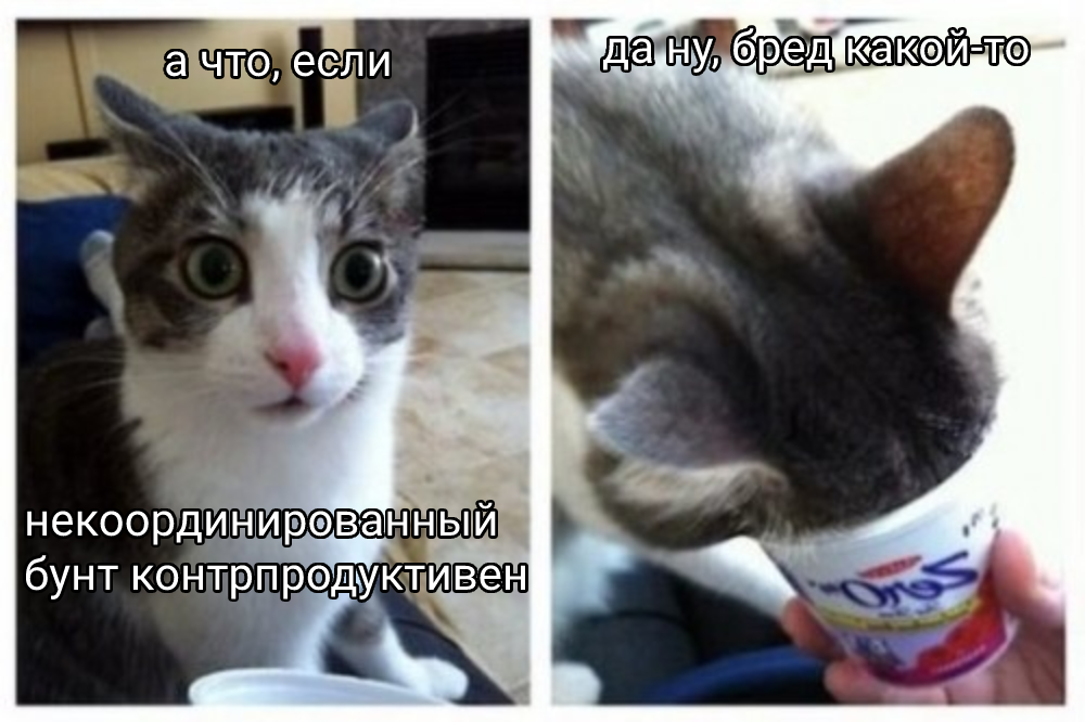 12 Simple.Me Юмор Была тут одна мысль про бунт... 2 года назад Картинка с текстом Мемы Картинки Кот А что если Да не бред какой-то Ещё 0