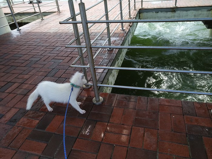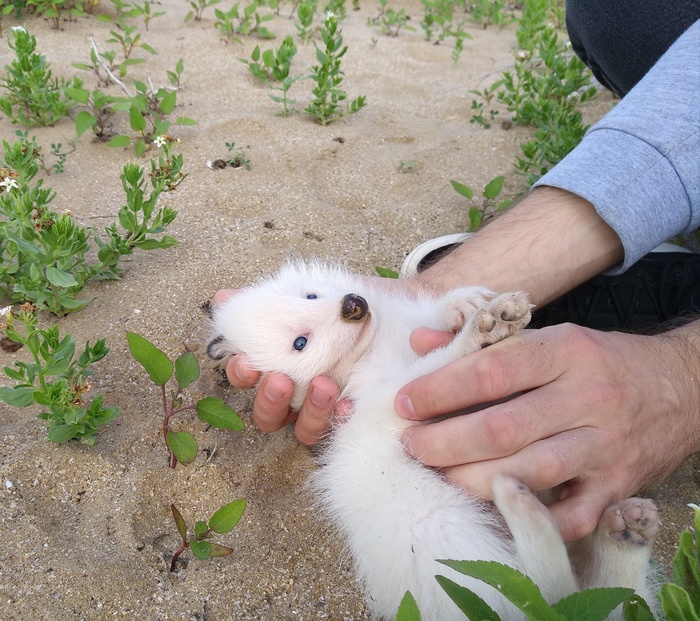 Милого пса мы забрали из Дагестана, в довесок к птицам которых мы там покупали для музея. Милый белый комок просто растопил наши сердца. Ну как можно такую милота не спасти от ужасной участи стать чьей то шубой?!