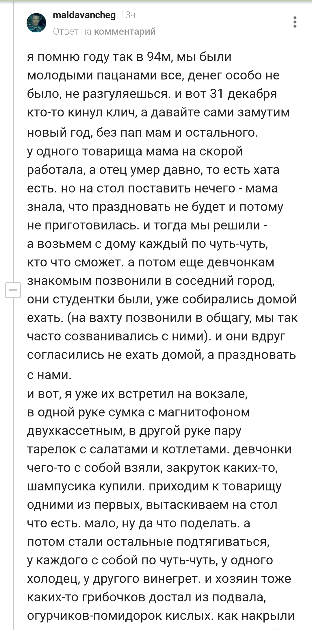 159 tristana77 Было время...1 4 месяца назад #comment_371106748 Скриншот Комментарии на Пикабу Праздничный стол 90-е Длиннопост 11 4 Ещё 0