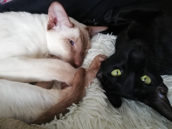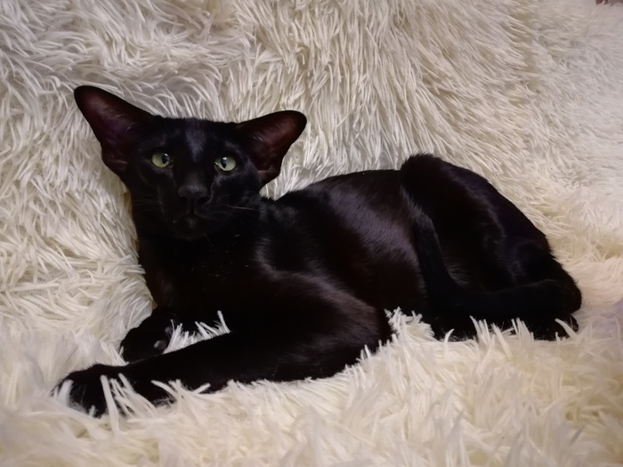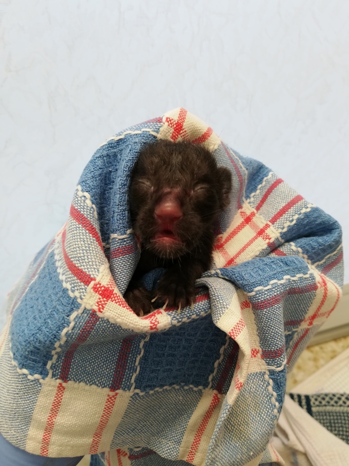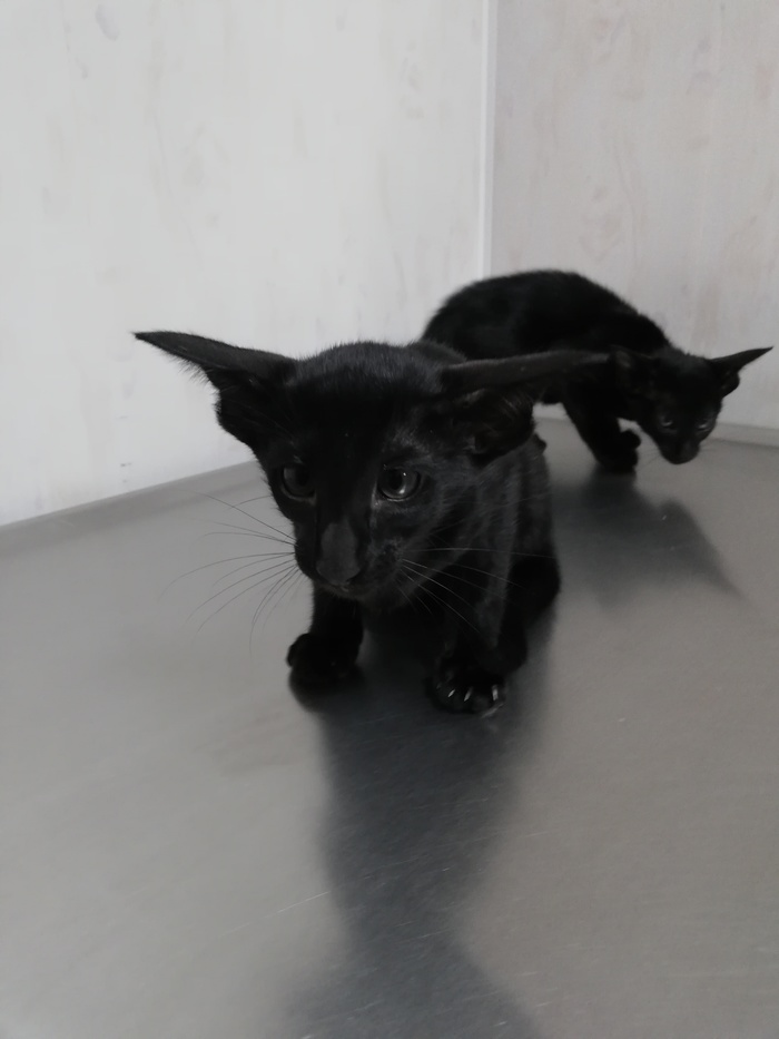 А теперь о том, как появился у нас второй ориентал. Привезли к нам в клинику на кесарево ориентальную кошку, потрясающего чёрного окраса. В помете было двое котят. Одну из них пришлось откачивать очень долго, она была зажата в родовых путях.