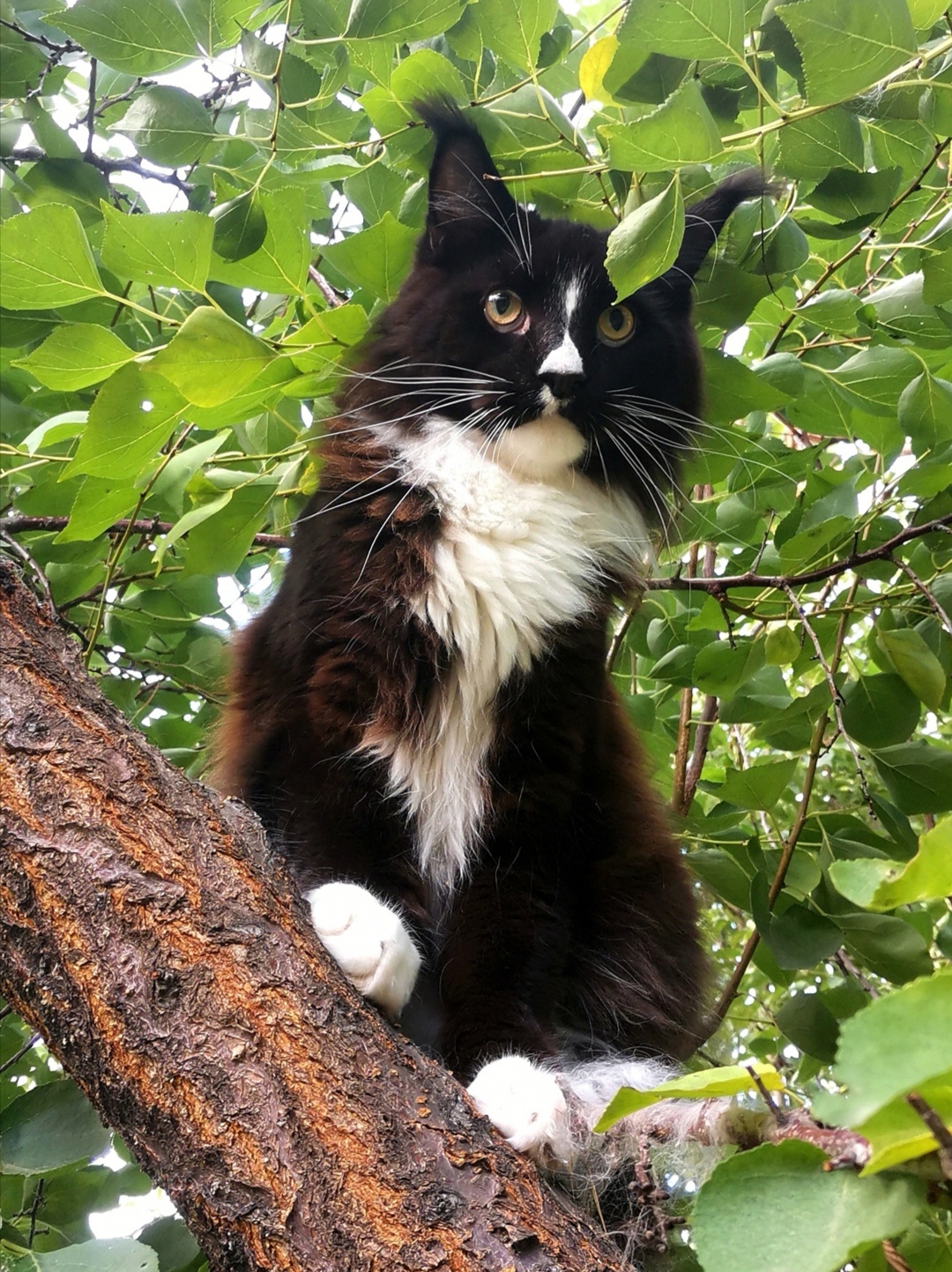 Вот таким я заметила его вчера на дереве (а мы все думали, что он вообще не умеет лазить...)