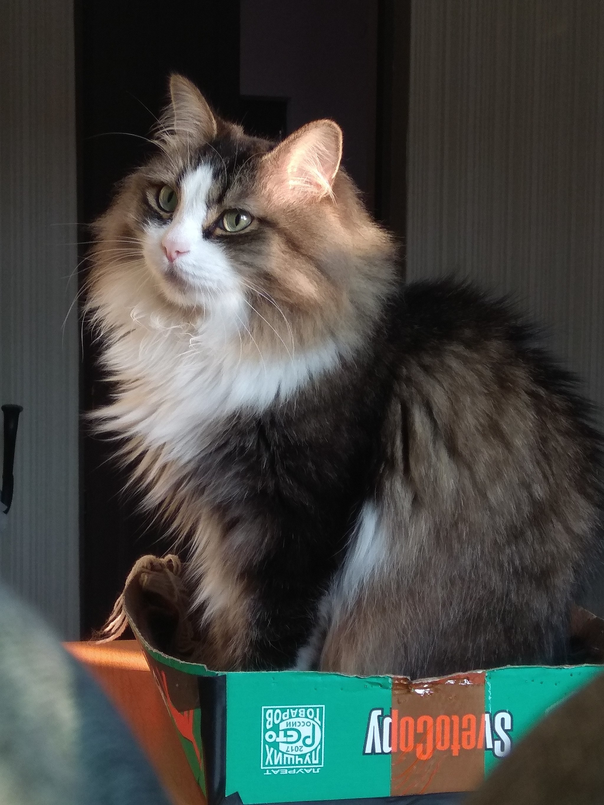 На нашего котейку похожа форматом) Тоже подобрыш, примерно такой же как у вас заморыш был. Вырос кабанёнком, в прошлом году 10 лет стукнуло! Счастья кошулечке и вам!