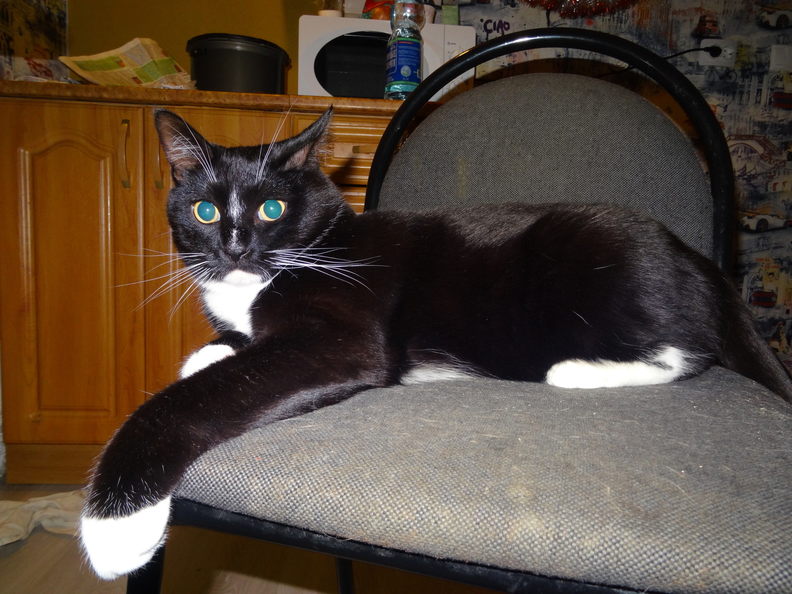 Обалдеть можно, даже светлая полоска на носике та же. Всегда удивляло сходство всех черно-белых котиков)