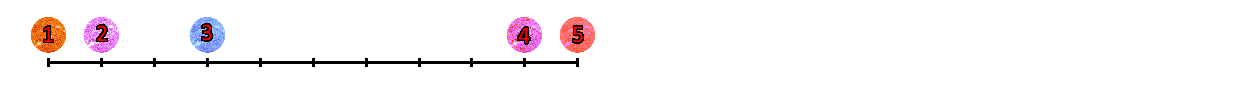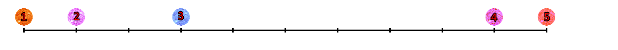 Если мы начнём растягивать с определённой скоростью нашу координатную прямую, то расстояние между звёздами 1 и 2, а также между 4 и 5, будет увеличиваться со скоростью 1x, между звёздами 2 и 3 — 2x, а между 1 и 5 — уже 10x.
