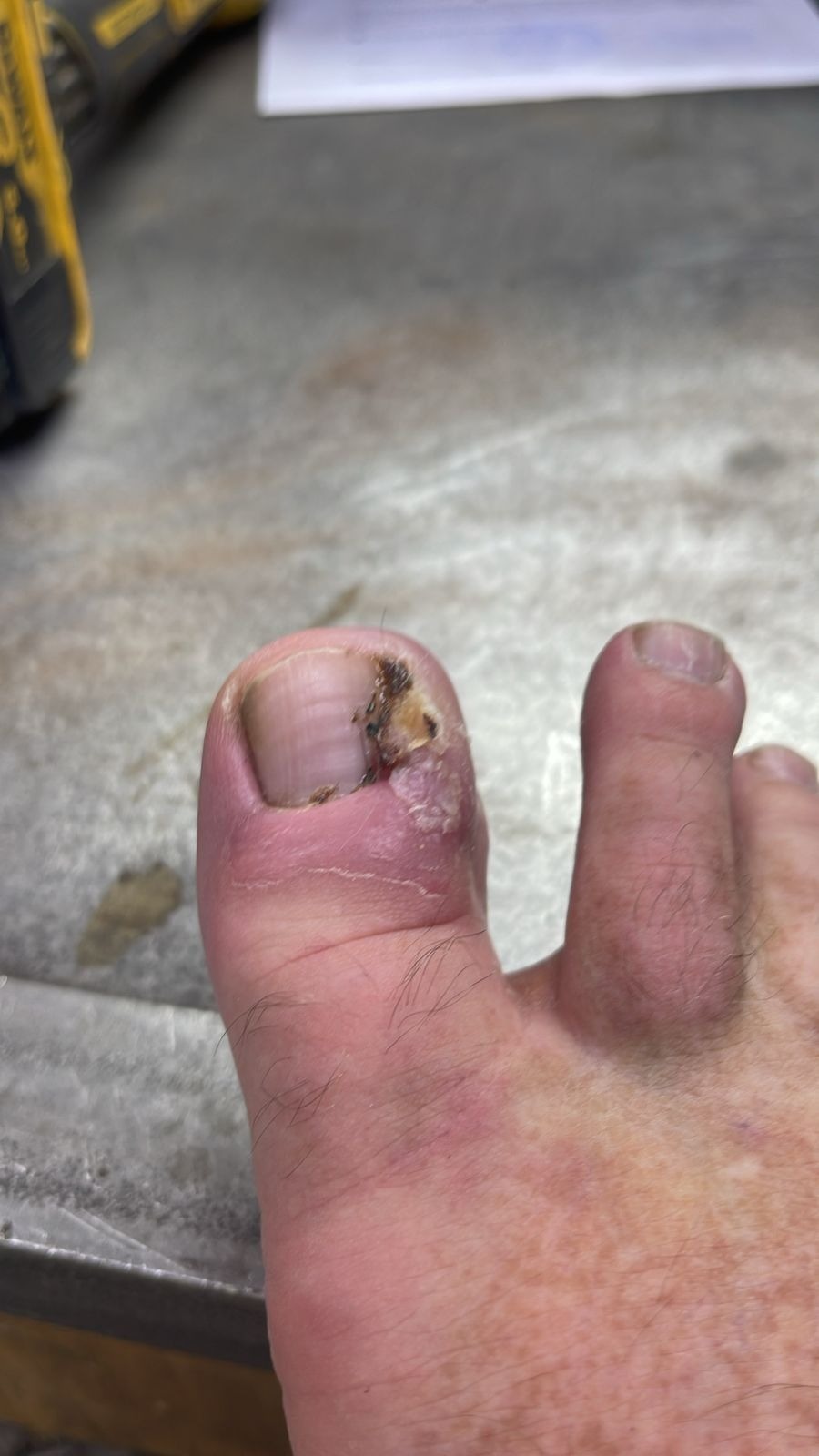 Врос у меня ноготь, стукнул об железку палец, ноготь пробил мясо и понеслось. Всякие помощники советовали идти к херургу.