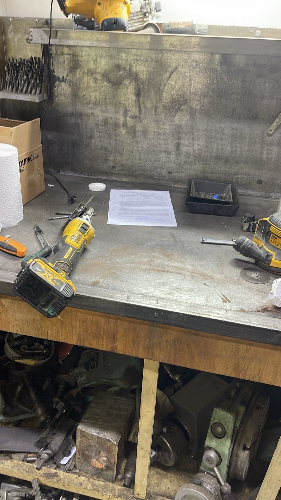 Подготовительные работы. Почистил слесарный стол. Серьёзно подготовился.