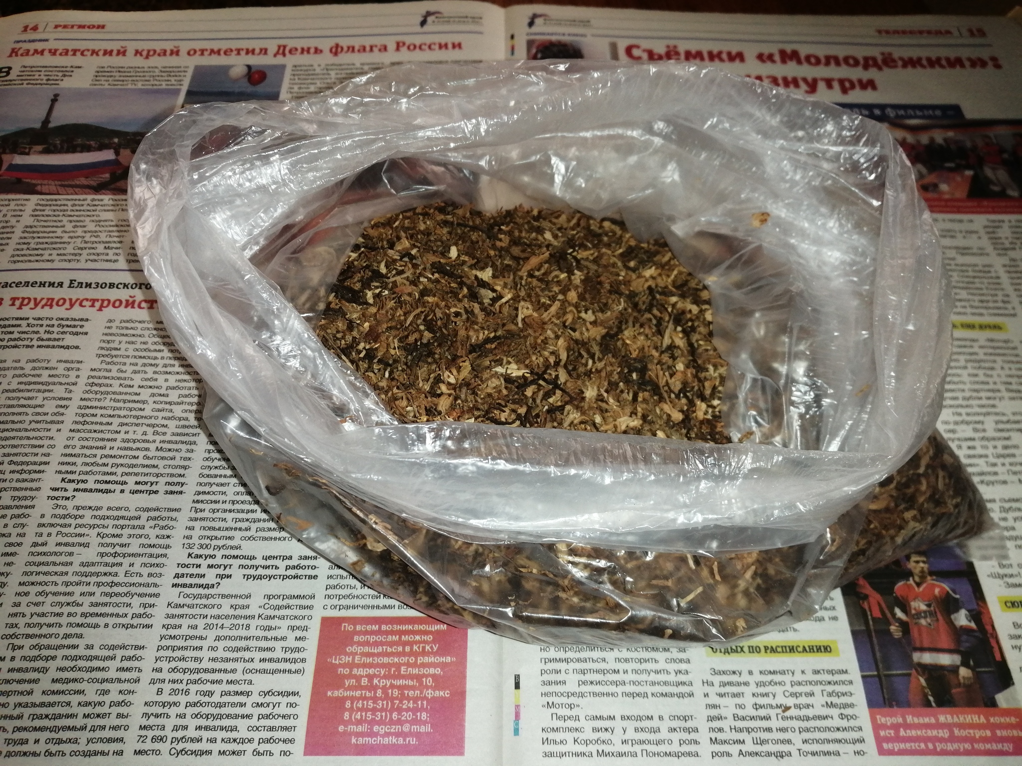 Заказывал 250г в Голд Табаке, дошёл быстро, за 6 дней из Уфы на Камчатку. Аромат из пакета — сначала напомнил хозяйственное мыло, такое, совдеповское) Табак сухой, нарезка.. Наверно, лента, но больше напоминает хлопья. Пыли, мусору — немного, но есть. Курил из трубки, из бумажки Mascotte, из папиросной гильзы. Из бумажки — вкус халфзвара, крепость норм, не кусачий. Из трубки — к концу добавилась нотка горелой корочки, из гильзы — к концу чуть дало привкус горелой соломы. В принципе, для табака ценой 550₽ за 250г — вполне курибельно, внутренний еврей — рад. Вирджиния чувствуется, чернослив тоже, глуховато, но привкус такой, что ему бы полежать немножко. Что я и исполнил: увлажнил кипячёной водицей да и распихал по зип-пакетам. Отсыпал немного в банку, на сейчас. На этом — всё. Курение — яд!