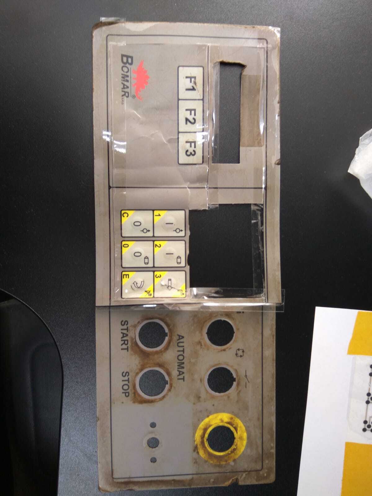 Итак, станок ленточнопильный по металлу BOMAR, подъем консоли не работает, тиски не зажимают и не отжимают. Пленочная клавиатура от времени и условий работы продавилась и порвалась, замыкали ее уже чем придется))). вот как это выглядело