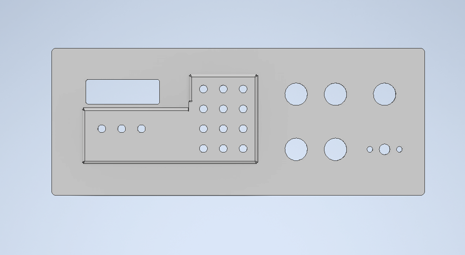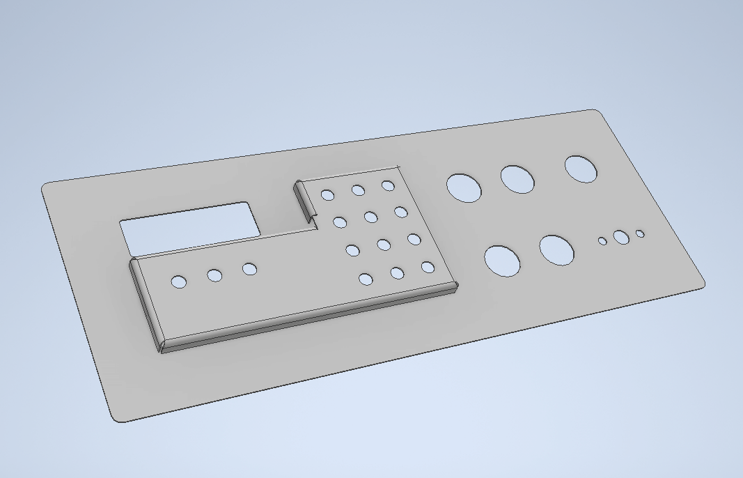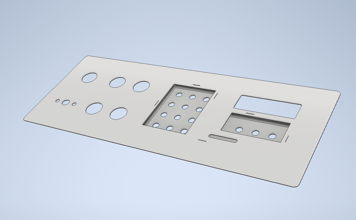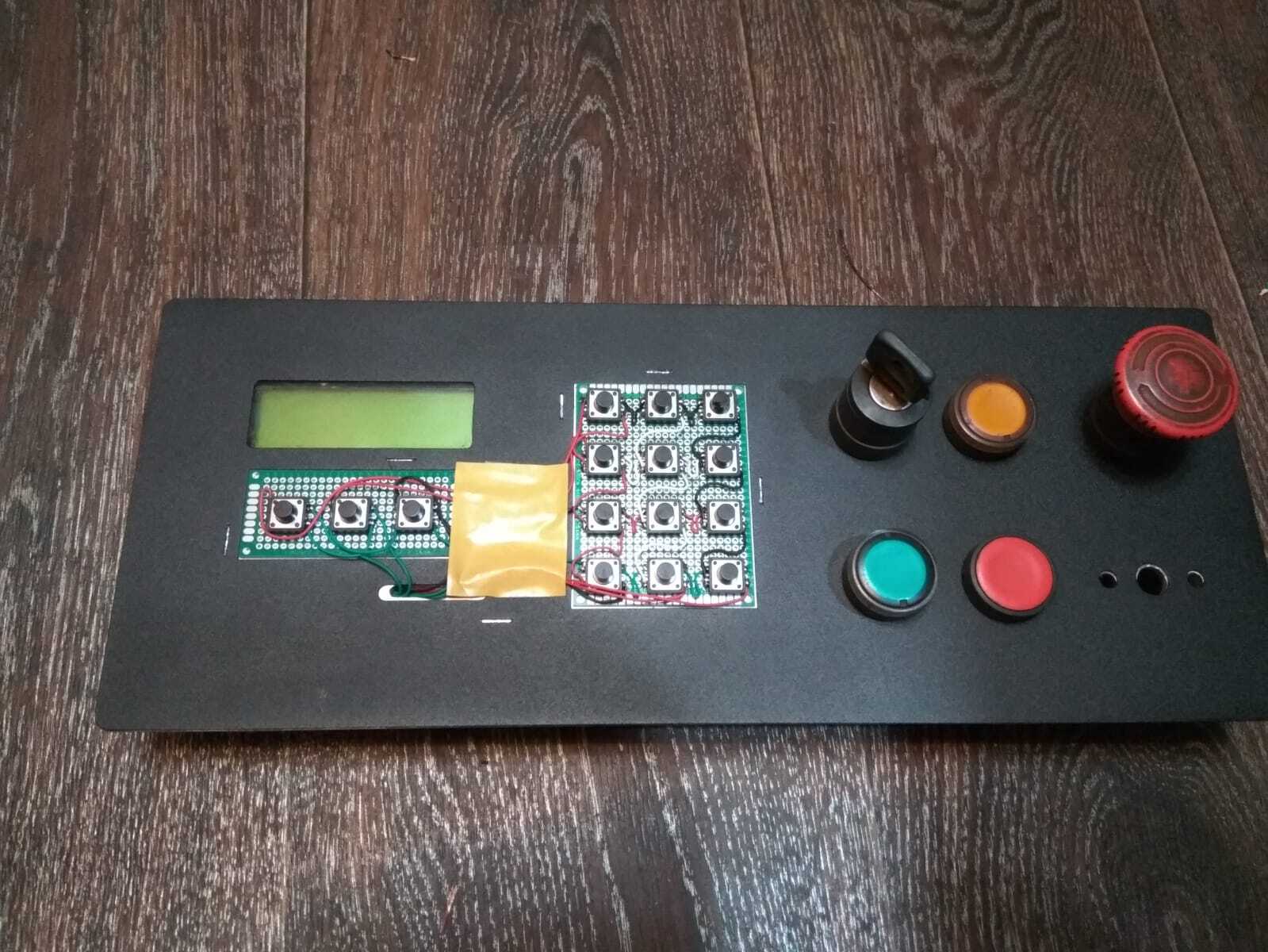 вырезал из металла 0.7 мм. Окрасил черным муаром. Купил две платки и 15 кнопок. Спаял, склеил. Прикрутил на место)))