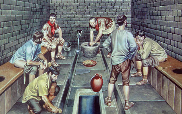 Жили в «цезарёвках» - вьетнамских общежитиях, без света, газа и туалета, в одной-двух комнатах, этажей было 4-5. Побогаче конечно жили на римских виллах, к ним обычно примыкали возделываемые рабами земельные угодья. Туалет в Риме был общественным, затем платным (деньги не пахнут), слабились в очко, выходящее в Клоаку (канализацию в виде проточной подземной реки), пысали в желобок под ногами – мочу собирали и использовали (стратегический продукт бытовой химии). Подтирались многоразовыми губками на палке.