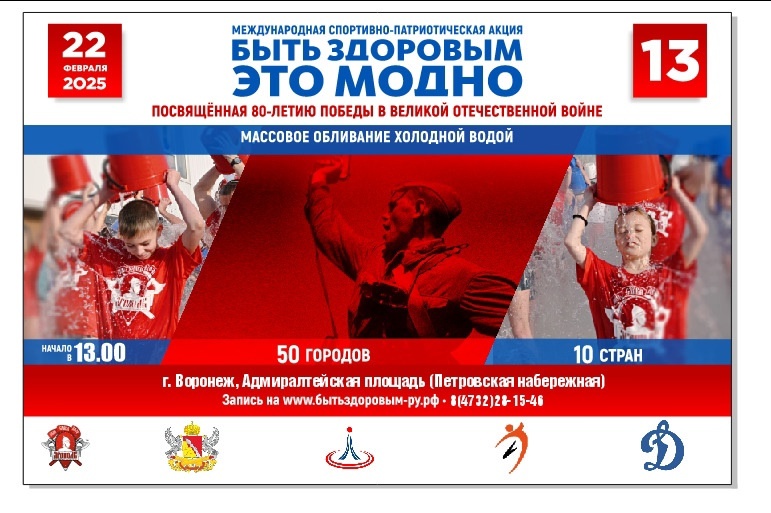 Воронеж присоединится к Международной спортивно-патриотической акции «Быть здоровым – это модно!», посвящённой 80-летию Победы в Великой Отечественной Войне.