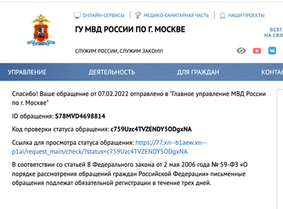 Проверить статус можешь здесь - https://77.мвд.рф/request_main/check/?status=c759Uzc4TVZENDY...