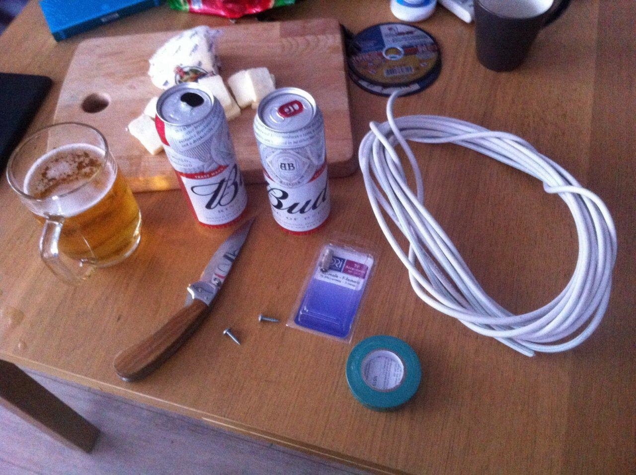 Живу последнее время в Люберцах. ТВ смотрю через ТВ-приставку от qwerty которая называется DUNE - мерзость редкостная: то зависнет она, то загружается, то обновляется, короче достало жуть как. Сегодня чаша моего терпения была переполнена. Эти пультики дебильные - одним ТВ включать, вторым каналы переключать, эти зависания бесконечные и перезагрузки меня достали. К тому же суббота. Скучно. Расстояние от места моего проживания до ТВ-Башни согласно сайта http://rtrs.ru/dtv составило 21 км. Телевизор бе онтенки не алё. Надо антенну. Сраные антенны РЭМО стоят 1000руб. РЭМО вообще гондоны. Это не мой путь. Руки есть - сделаю. Для этого поехал в Леруа Мерлен купил штекер-папу, зеленую изоленту, 8м кабеля 75 Ом (ну такой мерзковатый конечно, не за дорого) и спиздил 2 шурупа. Потом поехал в Икею купил там вешалку. Из Икеи перешел в Ашан купил там конфет Нильс (яблочные), сыр адыгейский и две (по 0,5л) банки пива. Приехал домой положил на стол.