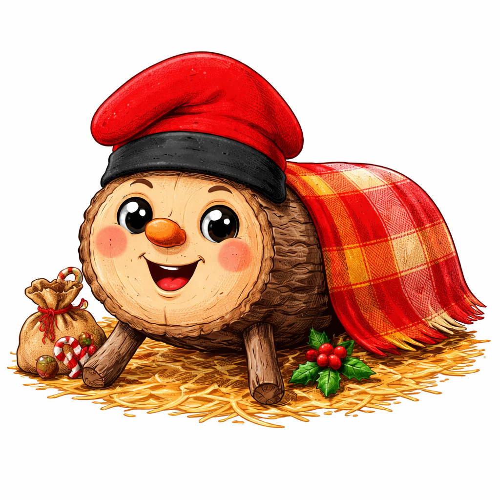 Это бревно с лицом, ножками и красной шапкой.
