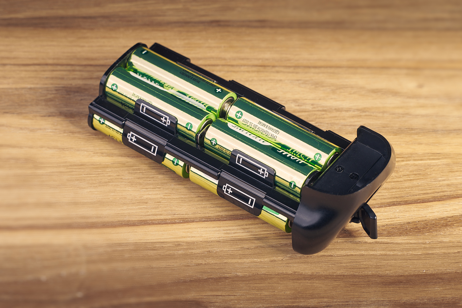 Энергонезависимость - восемь АА батареек в батарейной рукоятке (без нее камера совсем не торт). Их можно взять с собой в путь или купить в любом комке по дороге.