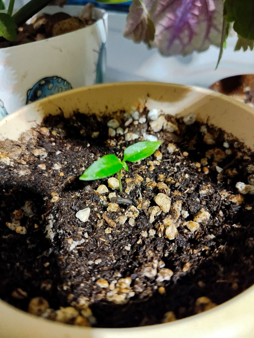 За неделю третье семечко догнало остальных в размерах) остальные два так и не взошли.
