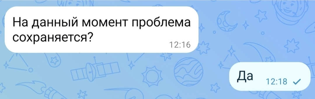 Ещё через 25 минут агент уточнил, сохраняется ли проблема.