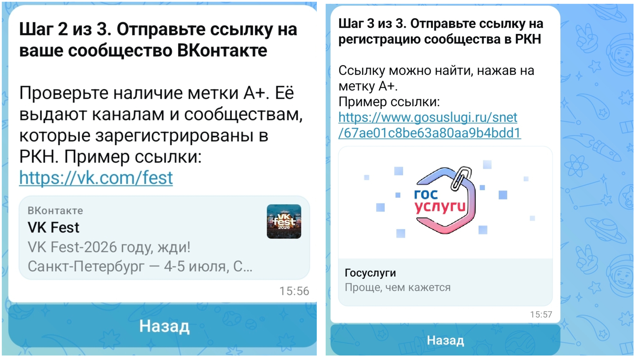 Не знаю совпадение это или нет, но ещё минут через пятнадцать я включил VPN, чтобы запилить новый пост в одну из заблокированных платформ, и в этот момент попробовал тыкнуть бота ещё раз. И вот эта попытка, предпринятая в 15:56 со включеным VPN, наконец-то увенчалась успехом и я смог пройти остальные шаги.