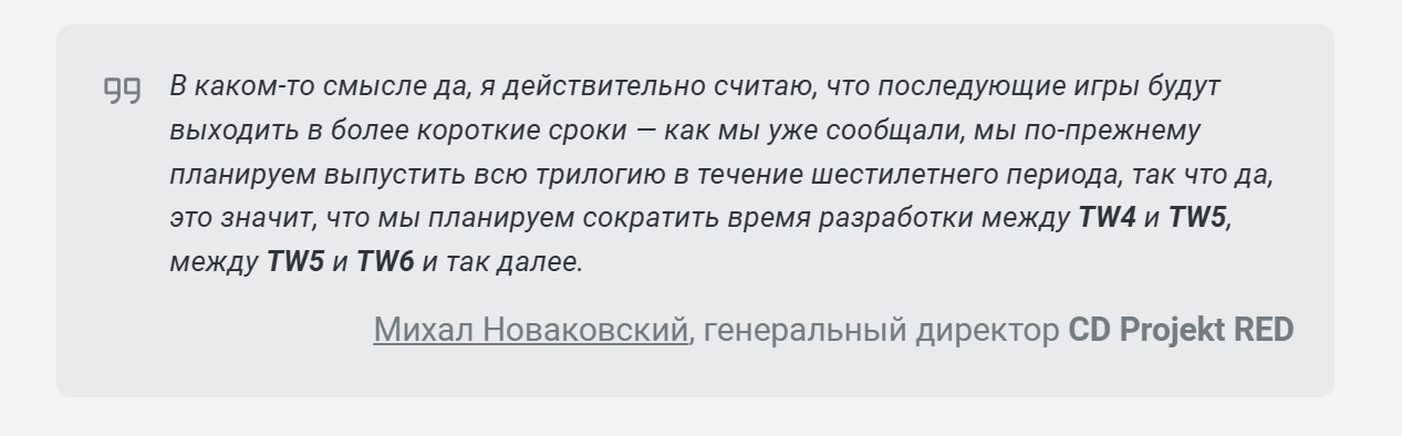 Кроме того, Новаковский рассказал, что CD Projekt намерена выпустить три The Witcher за шесть лет.