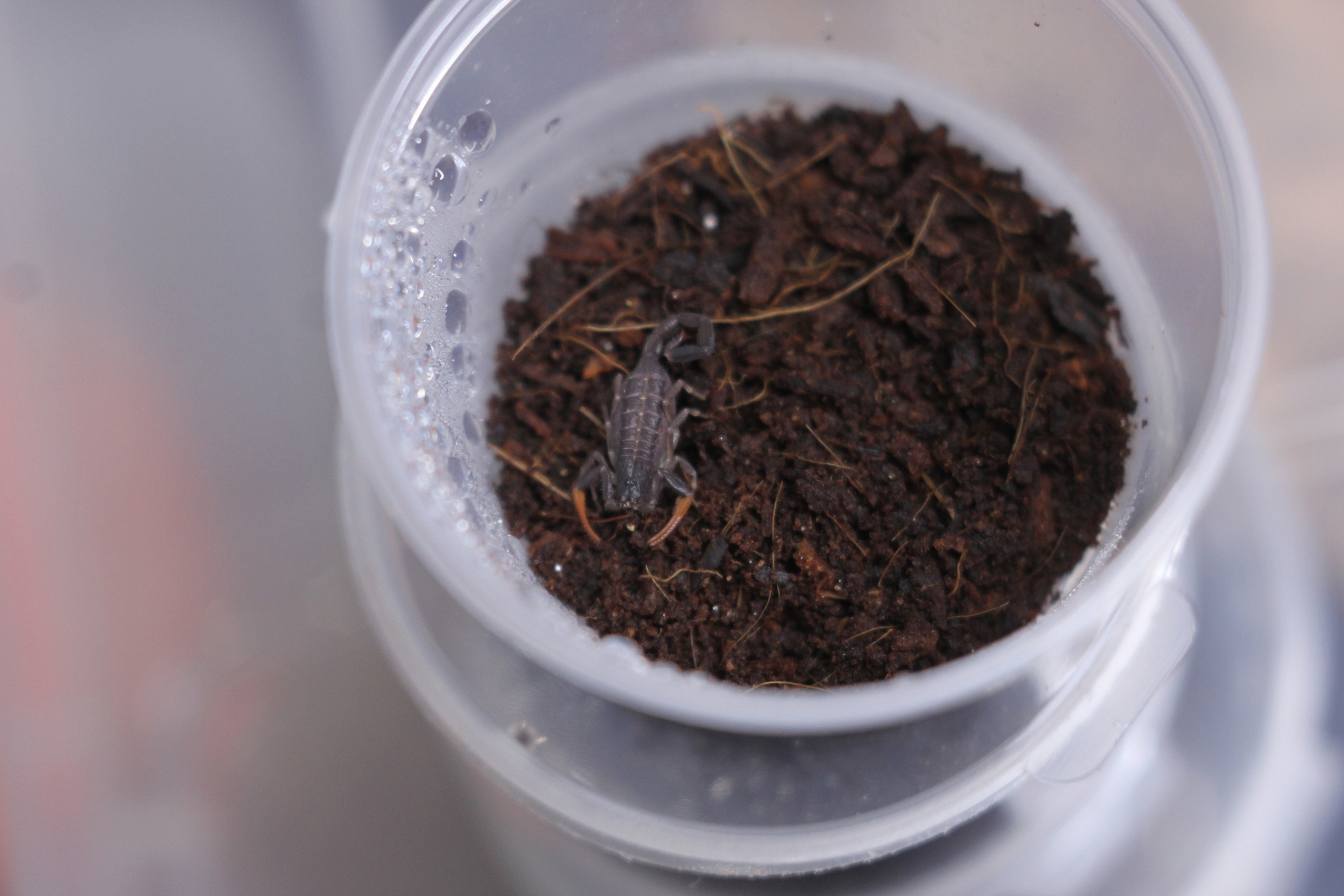 В неволе экземпляры содержались в чашах Петри диаметром 50-150 мм, в прямой зависимости от размера скорпиона. В качестве субстрата использовали влажную фильтровальную бумагу, а предоставленный корм ad libitum (по желанию исследователя) состоял исключительно из нимф и взрослых тараканов (Periplaneta american, P. australasiae, Blattella germanica и Pycnoscellus surinamensis).