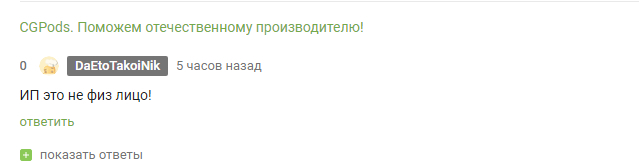 Я тут пообещал показать по чем фунт лиха ребятам рекламщикам из CGPods за то, что они нагло врут и продают писюны под видом "своей уникальной тюменской разработки", они посмеялись и удалили мой коммент в своей ТГ группе, где я всего то и сделал, что обратился с вежливой просьбой дать мотивированный ответ по вопросу обмана покупателей и звонков в адрес недовольных. Ладно хотя бы звонить с угрозой деанона (ух как страшно) не стали.