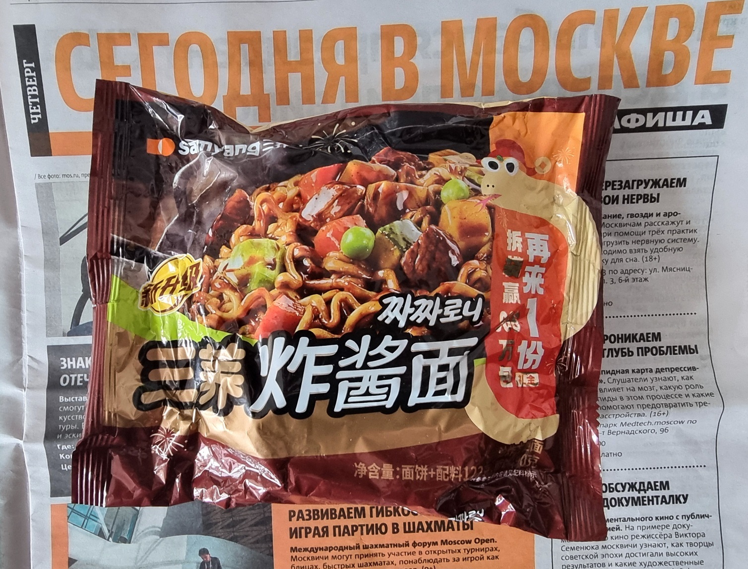 Здравствуйте, мои маленькие любознательные дошираковеды. Сегодня мы будем пробовать достаточно популярную лапшу, а именно Chapaghetti в соусе из чёрных бобов от Samyang. Особенность моего экземпляра в том, что, во-первых, это китайский Samyang, а во-вторых, это лимитка, выпущенная специально к наступлению Года Змеи (да, я очень долго готовил этот обзор). Данный бичик не сказать чтобы бюджетный - в различных магазинах его стоимость варьируется от 130 рублей за штуку до каких-то совершенно неприличных цифр. Стоит ли оно того - проверим.