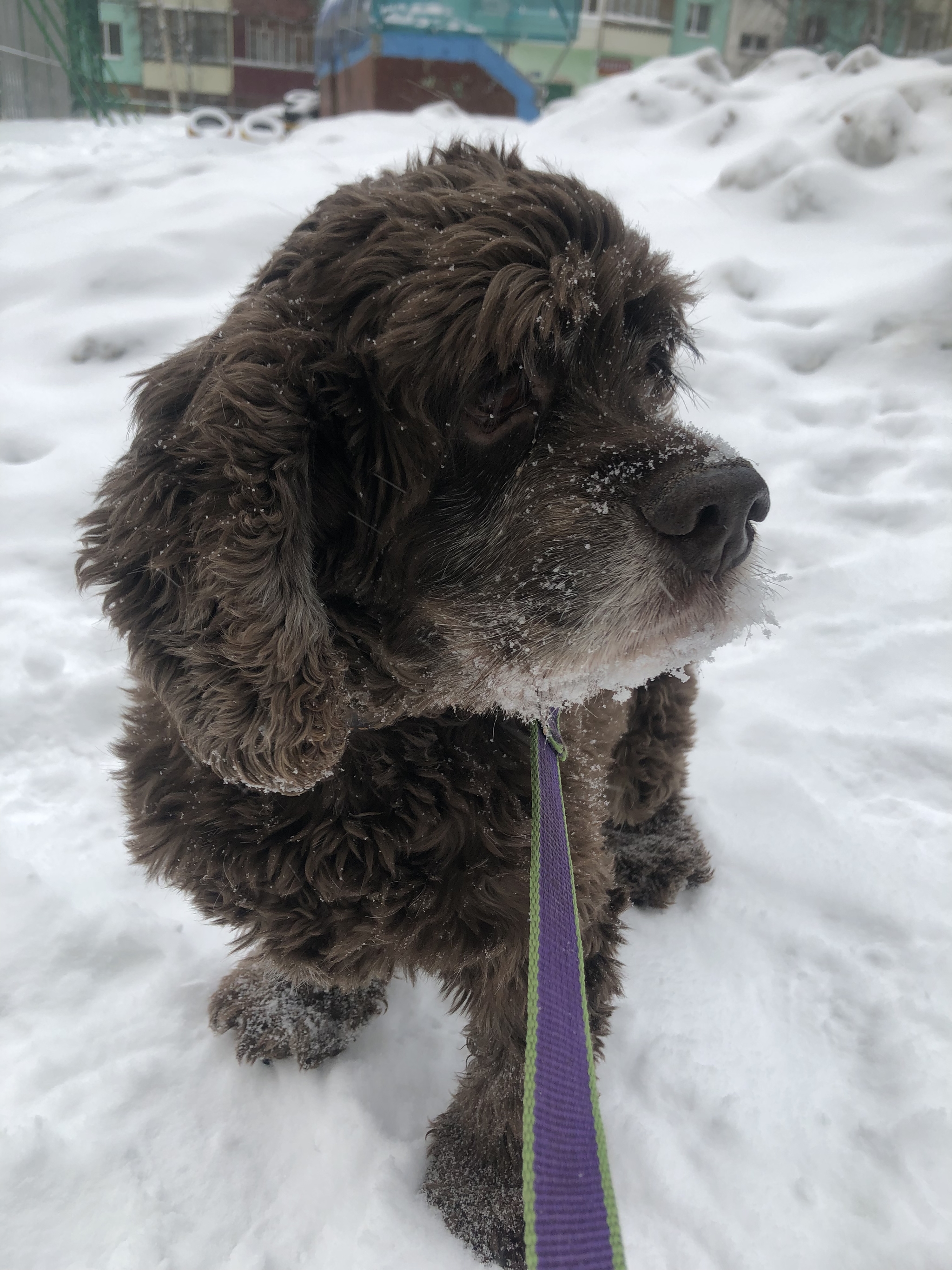 Кудрявый кокер спаниель ищет хозяев в Сургуте. Сейчас на передержке у нас. Забрали из приюта так как стая его не принимала. Примерно 9 лет, глуховастенький, почти не гавкает, исправно ждёт собачьих дел и не хулиганит.